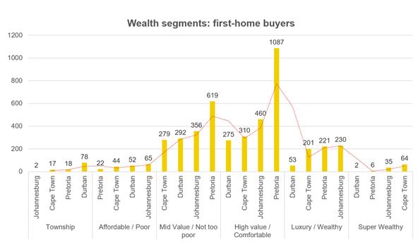 In the graph below, the concentration of first-time purchases in the R700k-R1m and the R1m-R1.5m segments is clearly evident.