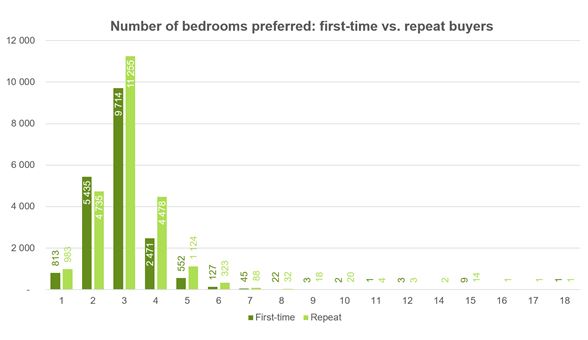 Both first-time and repeat buyers mostly want three bedrooms and two bathrooms.